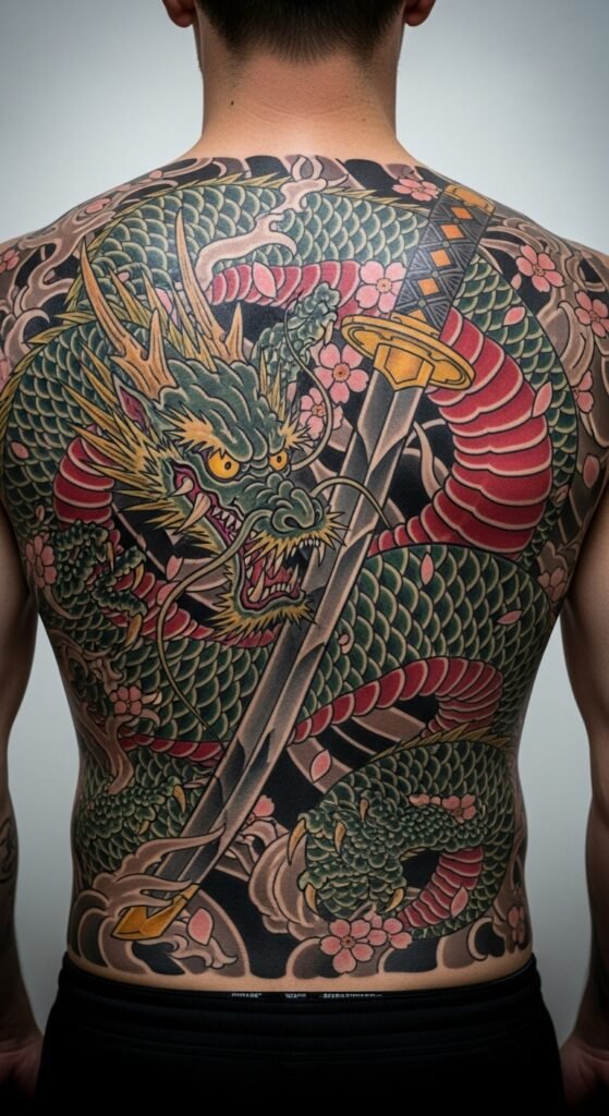 The careful arrangement of motifs, from koi to dragons, tells your story, expressing strength and loyalty, forging connections that transcend the skin, igniting a fierce sense of freedom. The dragon’s ascent across the back signifies elevated rank and protective power, koi along the spine symbolize perseverance and the journey toward transformation, and florals soften the composition with honor and resilience.