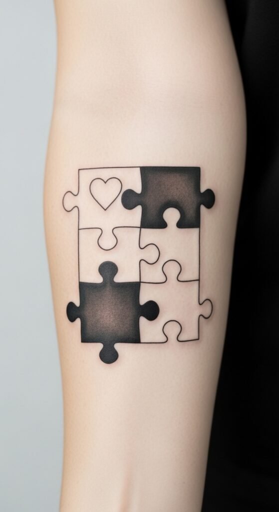 These tattoos embody puzzle piece symbolism, illustrating how you and your partner fit together perfectly. Each piece signifies emotional connectivity, reminding you of your shared journey.