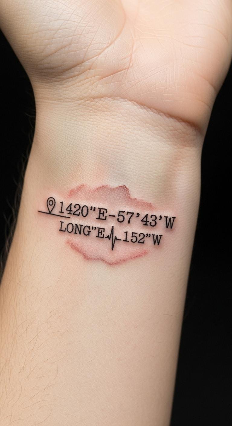 Capturing the essence of your love story, tattooing the coordinates of special places can create a permanent reminder of the moments that define your relationship. Each number holds location significance, marking where you first met or shared unforgettable adventures.