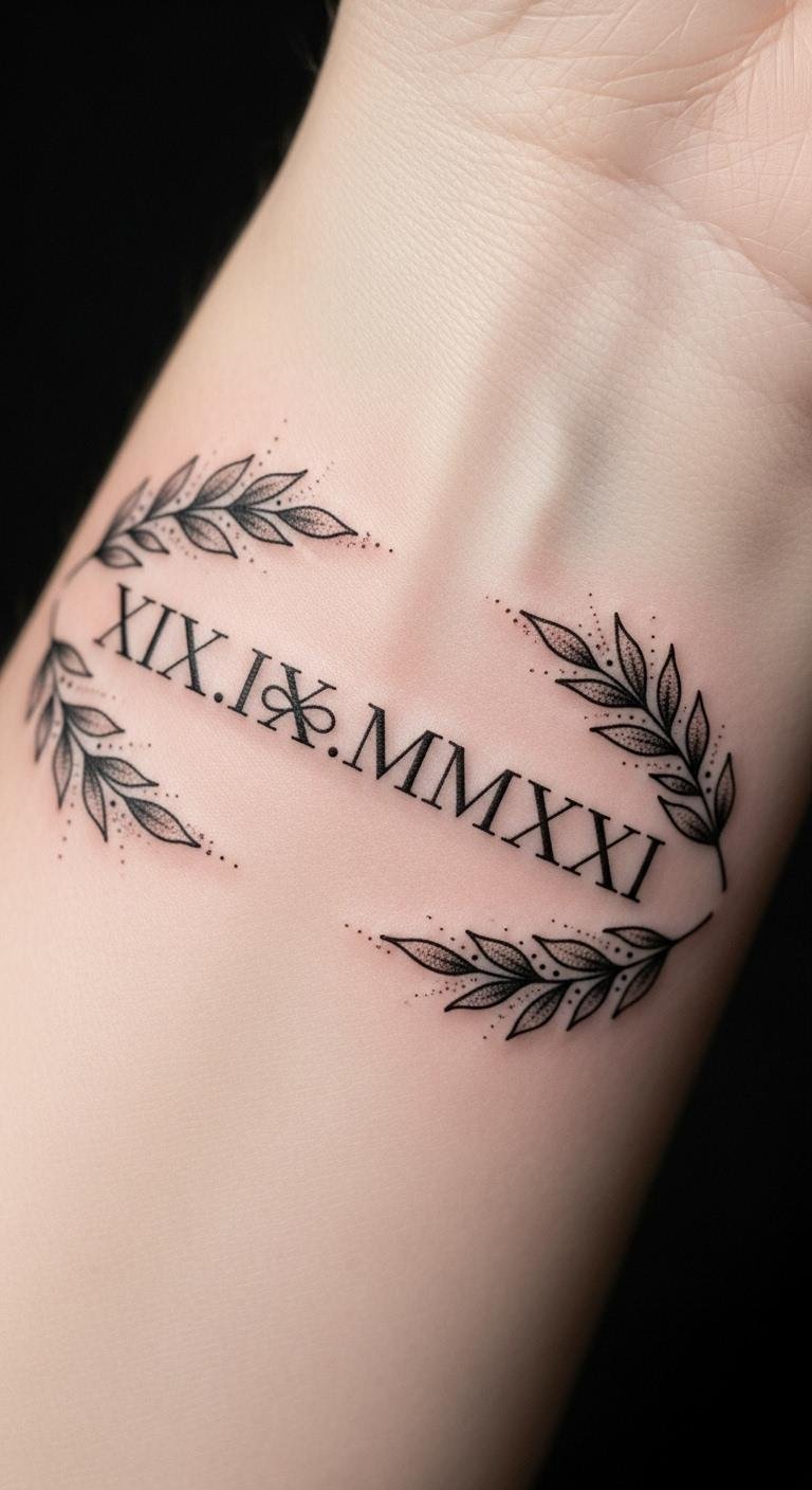 These subtle tattoos can mark significant milestones, like anniversaries or first dates, adding personal significance to your ink. Their classic style blends beautifully with modern aesthetics, making them a perfect canvas for your love story’s most cherished dates.