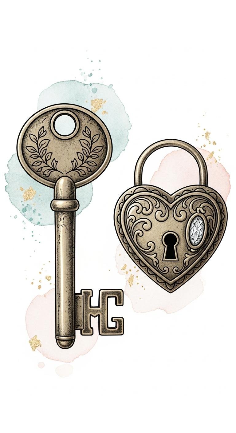 The entwined circle and key speak to trust and mutual unlocking of each other’s hearts, while the heartbeat-to-infinity transition symbolizes lasting vitality and continuity.