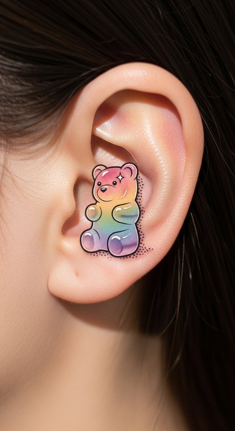 Hidden Tattoos: Gummy Bears Behind the Ear