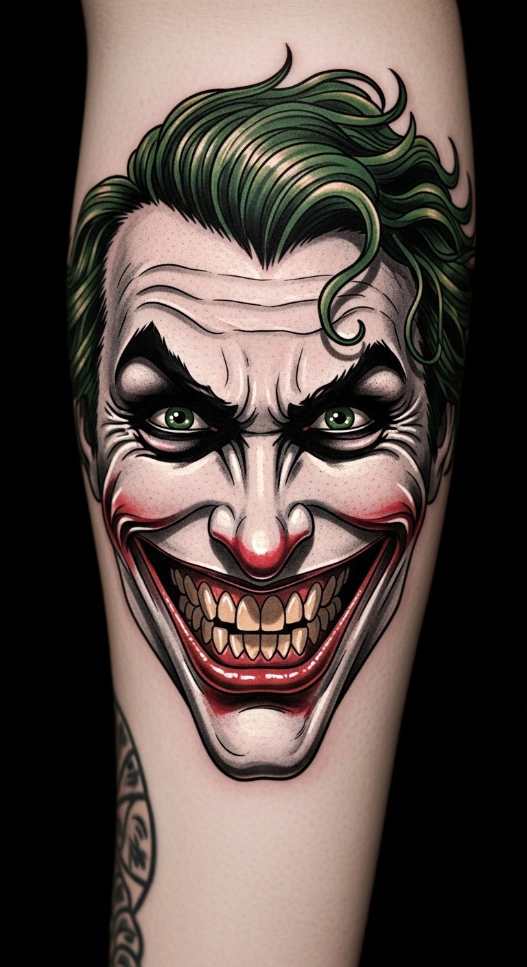 When you think of the Joker, that iconic, sinister smile instantly comes to mind, and getting a Classic Joker Smile tattoo captures that essence beautifully.