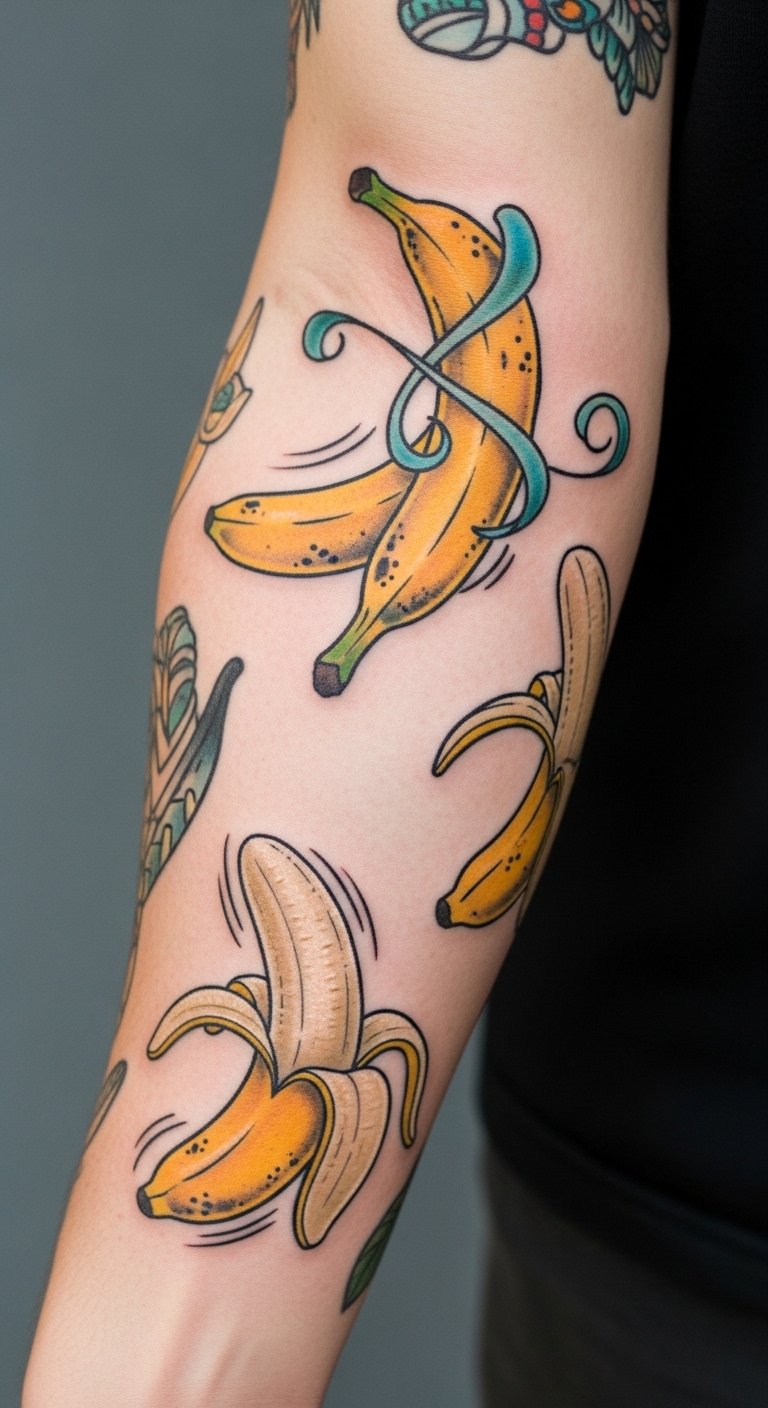 Lively Banana Peel Tattoos: Humor and Charm