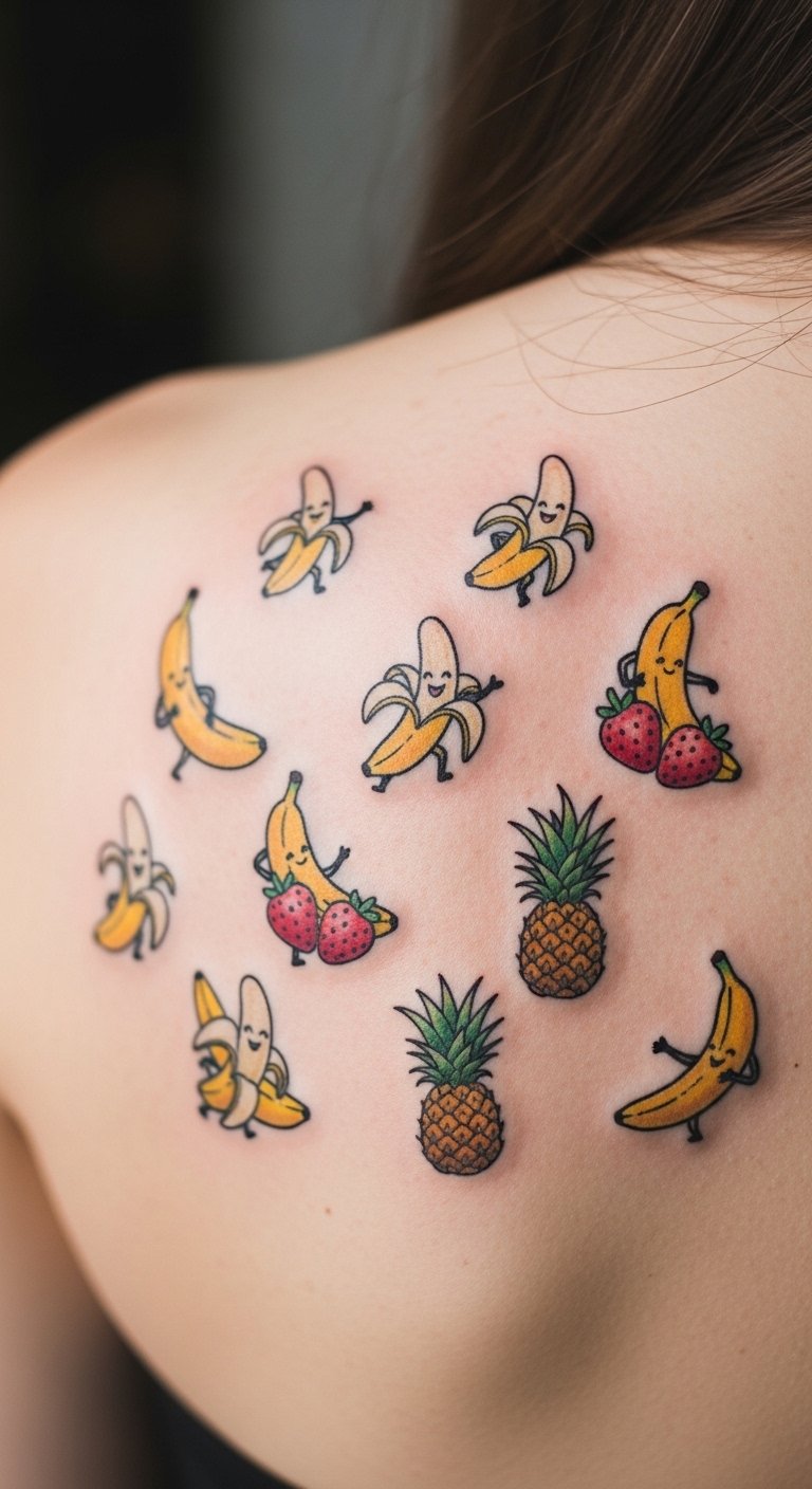 Cluster Tattoos: Multiple Bananas and Fruit Combinations