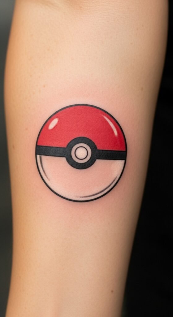 A small Pokéball tattoo captures the essence of adventure and nostalgia in just a few bold lines. This design embodies the spirit of Pokémon, representing not just a game, but cherished memories of exploration and friendship.