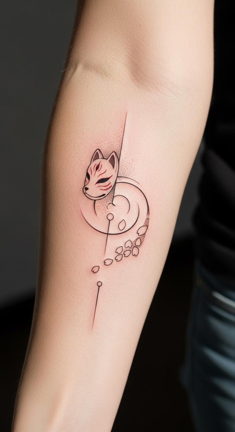 This concept draws on the original text’s celebration of virtual try-on technology and anime passion by turning that idea into a wearable emblem: the fox mask symbolizes curiosity and transformation, while the sakura petals suggest fleeting beauty and personal evolution.