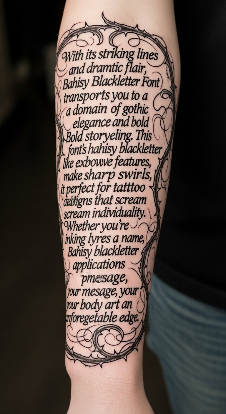 While exploring the domain of tattoo fonts, Hewina Font stands out with its unique blend of elegance and rebellious spirit. Its intricate hewina font styles flow seamlessly, allowing you to express your individuality boldly. Perfect for tattoos that demand attention, the hewina font applications range from names to quotes, inviting you to embrace your freedom and showcase your true self through stunning ink designs. The design concept uses the original text as the visual element, rendered in Hewina Font with varied weights and flowing ligatures; decorative flourishes and subtle ink textures emphasize contrast between elegance and rebellion. Symbolically, the flowing script represents personal narrative and freedom, while the rebellious accents—sharp terminals or splatter details—convey defiance and strength. Emotionally it evokes pride and authenticity, meant for visible placements such as forearm, ribcage, or along the collarbone where the eye naturally follows the script’s movement, allowing the wearer to declare identity and values with both beauty and boldness.