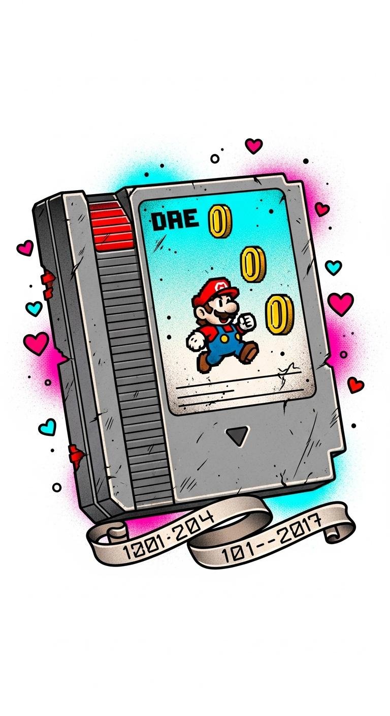 Nostalgic designs, featuring iconic cartridge art, capture the essence of your childhood gaming adventures. Each inked detail serves as a tribute to those unforgettable moments, allowing you to carry your cartridge memories with you, forever etched in vibrant colors.