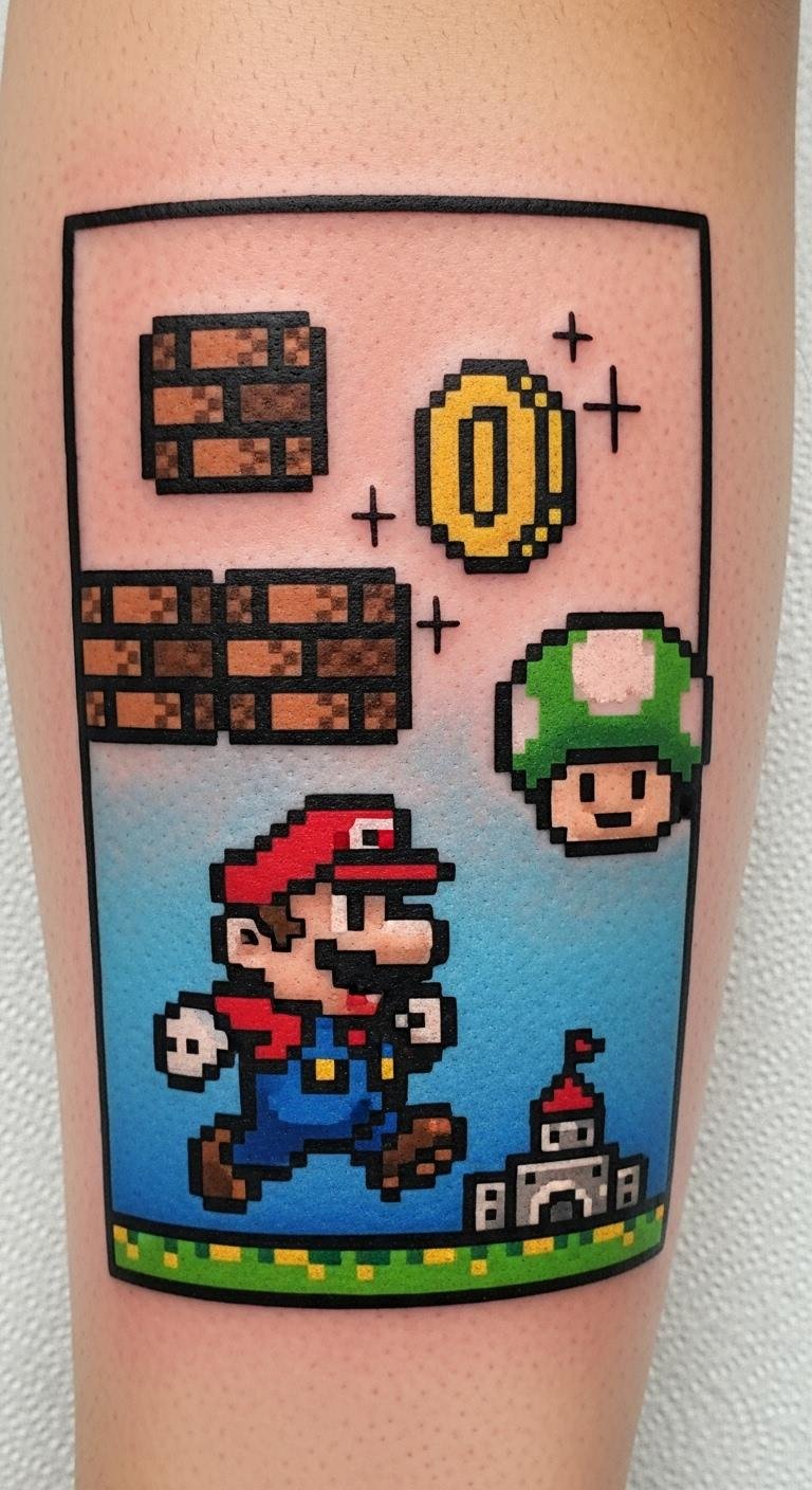 Pixel art tattoos bring a vibrant nostalgia to life, allowing you to wear your favorite moments from Super Mario on your skin.