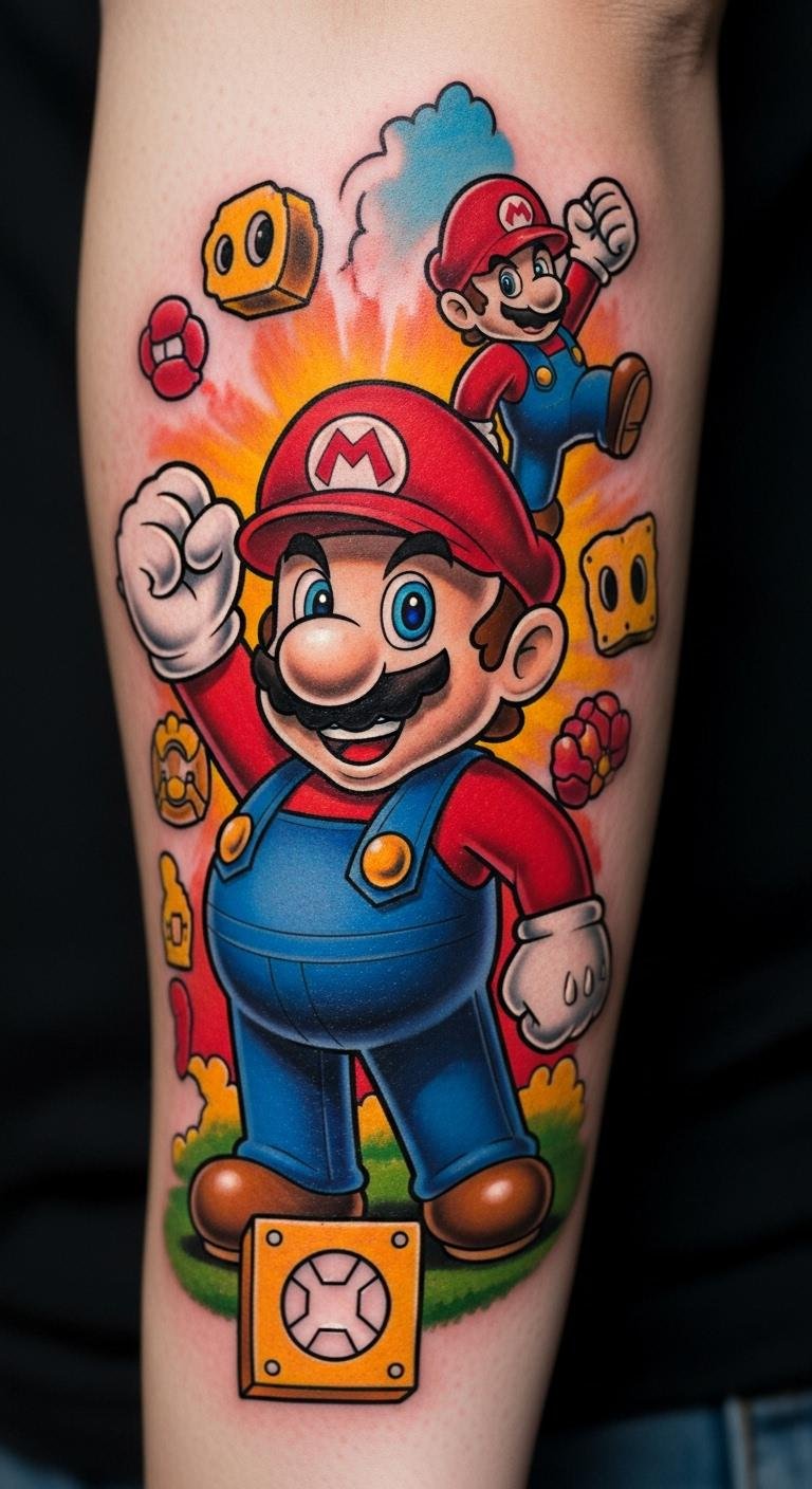 Vibrant Color Palettes in Mario Tattoos