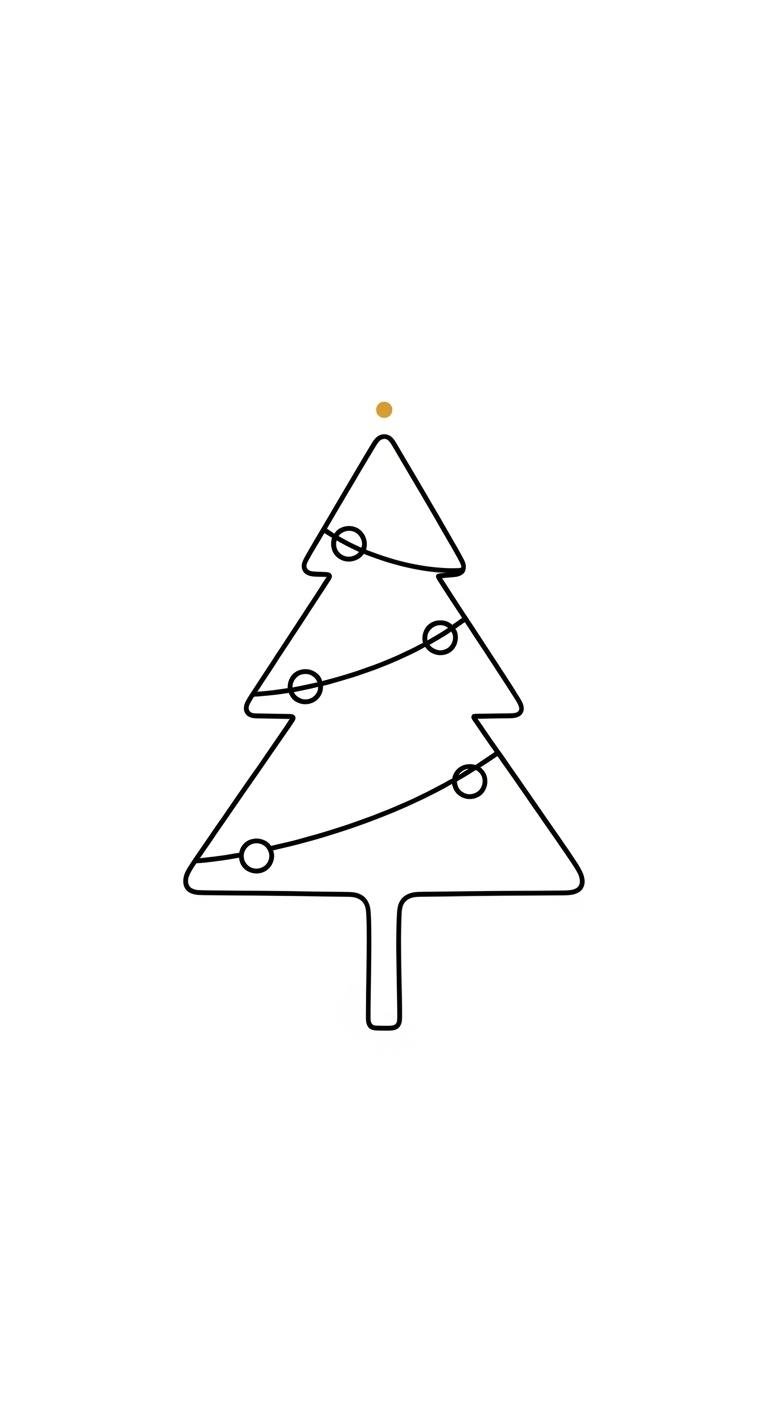 These elements symbolize quiet celebration and refined holiday memory: the single line represents continuity and simplicity, the gold dot star adds a focal point of warmth and joy, and the negative-space ornaments suggest personal stories left open to interpretation.