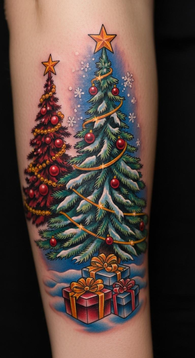 From bold traditional styles bursting with color to delicate watercolor designs that evoke magic, each piece reflects unique artistic influences. Immerse yourself in tattoo culture, where every inked tree tells a story, celebrating joy, resilience, and cherished memories during the holiday season.