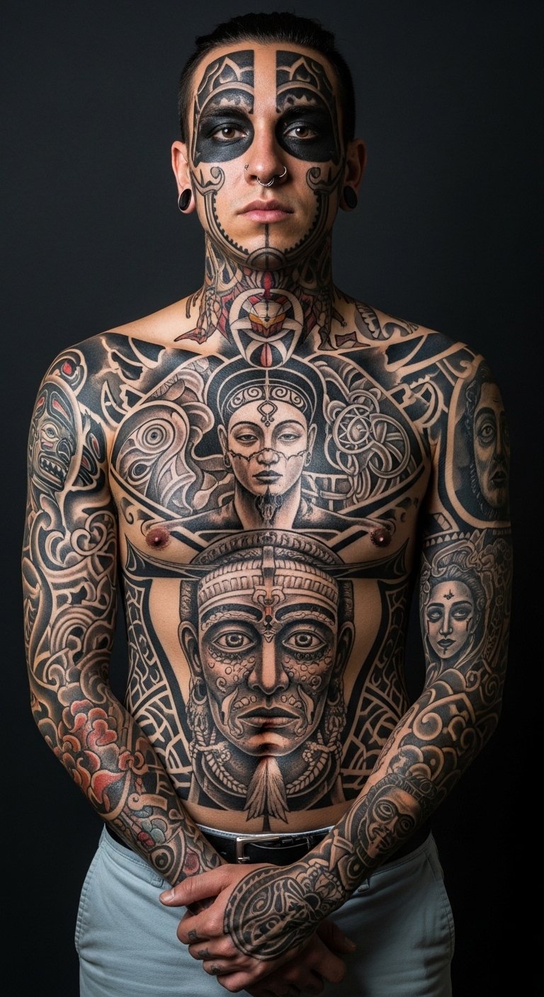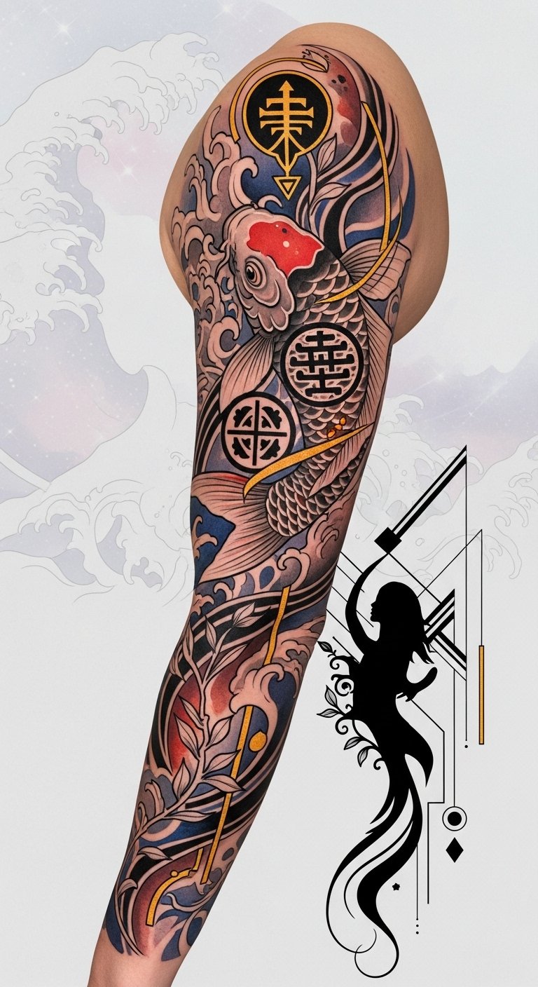 Blending these elements creates a fascinating narrative on your skin, reflecting your journey and values. Immerse yourself in this fusion, and embrace your unique story!