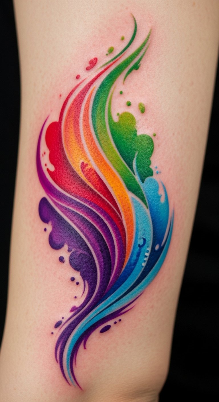 Ideal placement is along the forearm or upper back where the elongated canvas allows gradients to travel and interact, creating movement visible from multiple angles and enabling the tattoo to read as both detailed close-up work and a striking statement piece from a distance.
