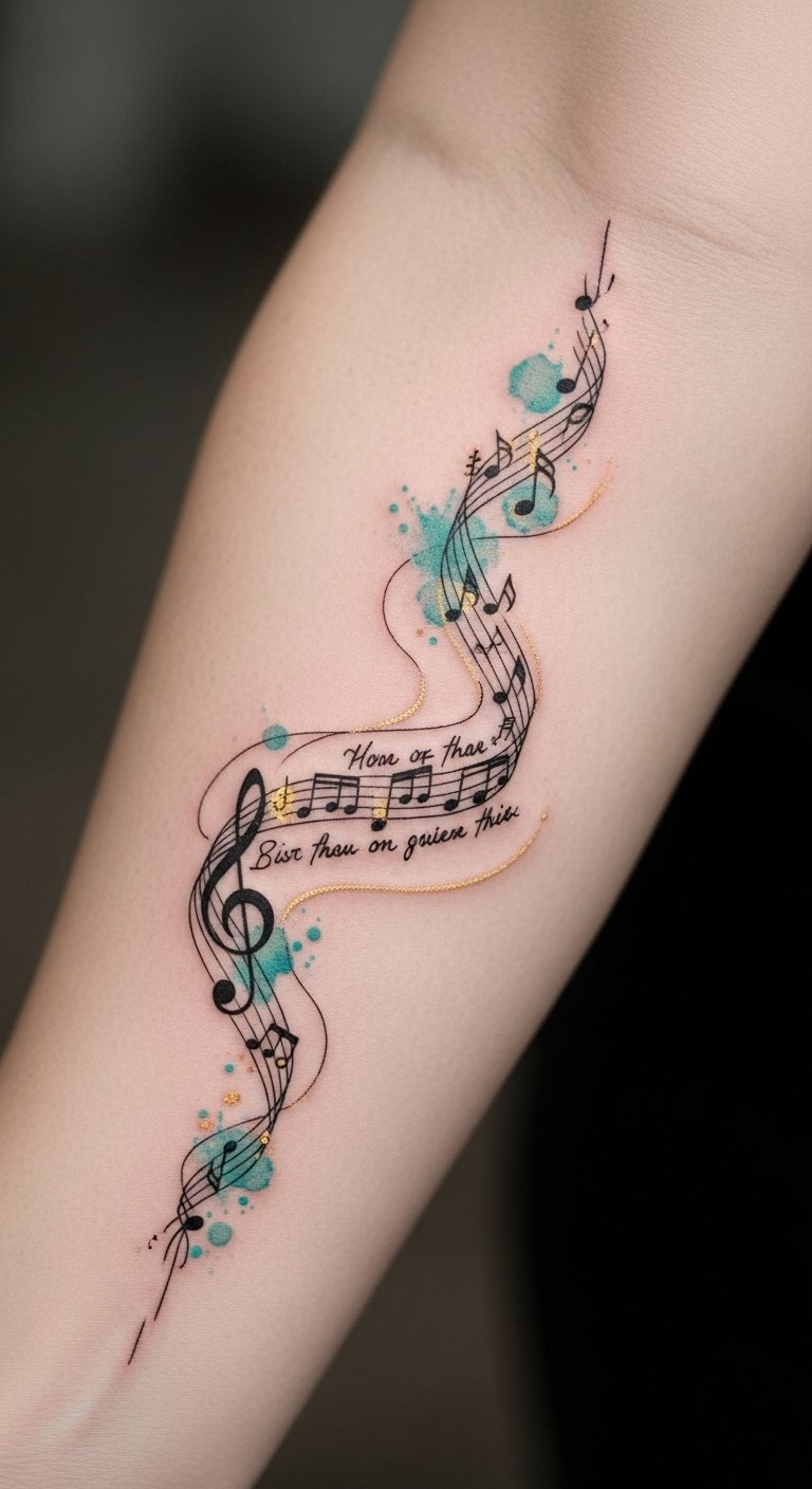 From lyrical significance to melody expression, song quotes can embody your music inspiration, turning harmony designs into meaningful art that resonates with your spirit and freedom. The design symbolizes the intertwining of memory and melody—the staff lines as life’s journey, notes as pivotal moments, and the handwritten lyrics as personal narrative; emotionally it evokes nostalgia, empowerment, and intimacy.