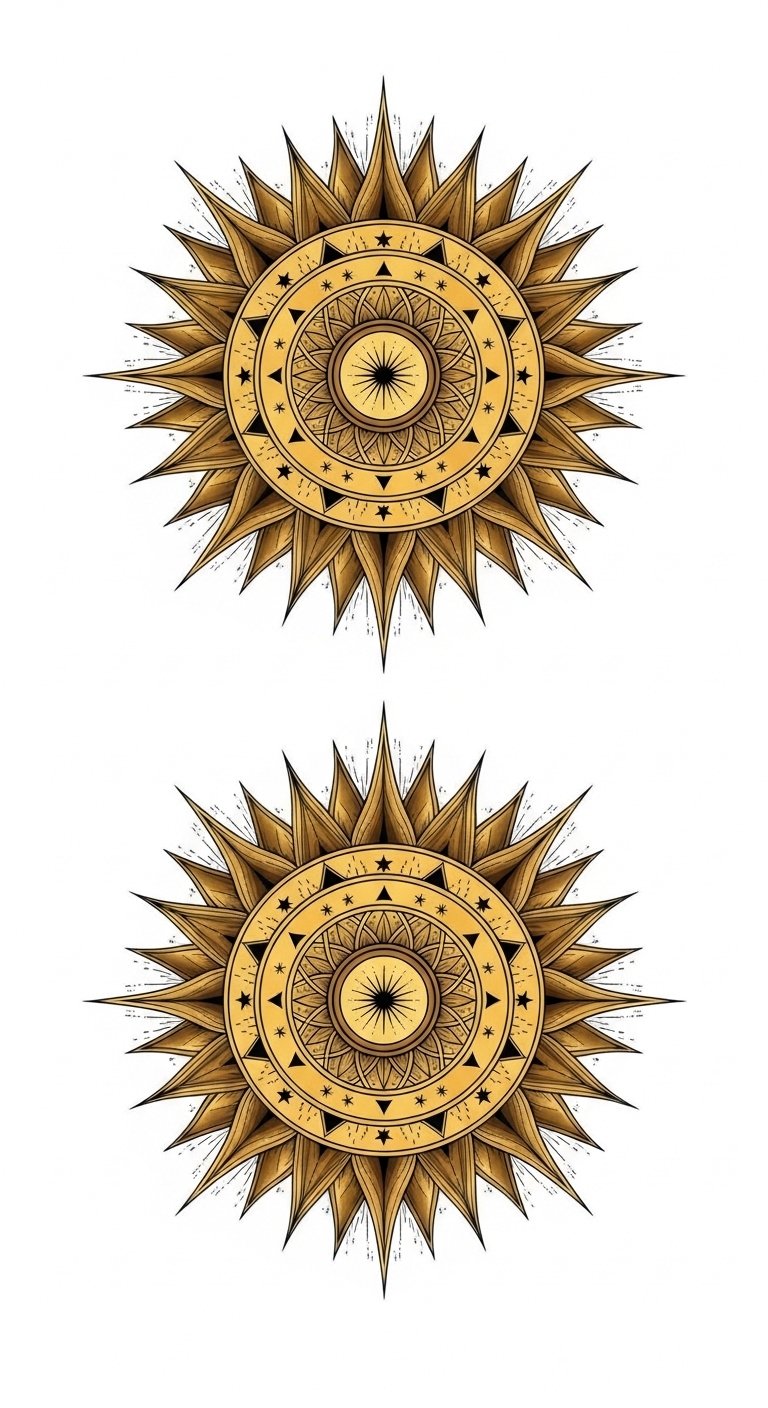 This design symbolizes shared vitality and individual growth—warmth, optimism, and mutual inspiration. Emotionally it evokes encouragement and confidence; place as small matching tattoos on inner wrists, behind the ear, or on opposite collarbones so the halves meet visually when together.