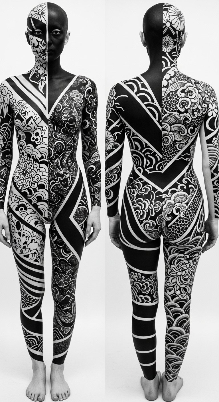 Japanese irezumi captures the imagination with its intricate storytelling and cultural depth, but the world of body art also boasts the striking allure of blackwork bodysuits. These designs use blackwork techniques to create bold contrasts, playing with negative space and intricate patterns on a large scale.