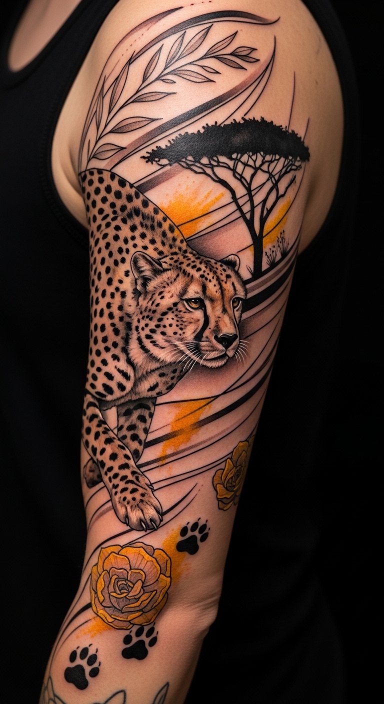 Cheetah-themed sleeve tattoos offer a stunning way to showcase your passion for these majestic animals while making a bold personal statement.