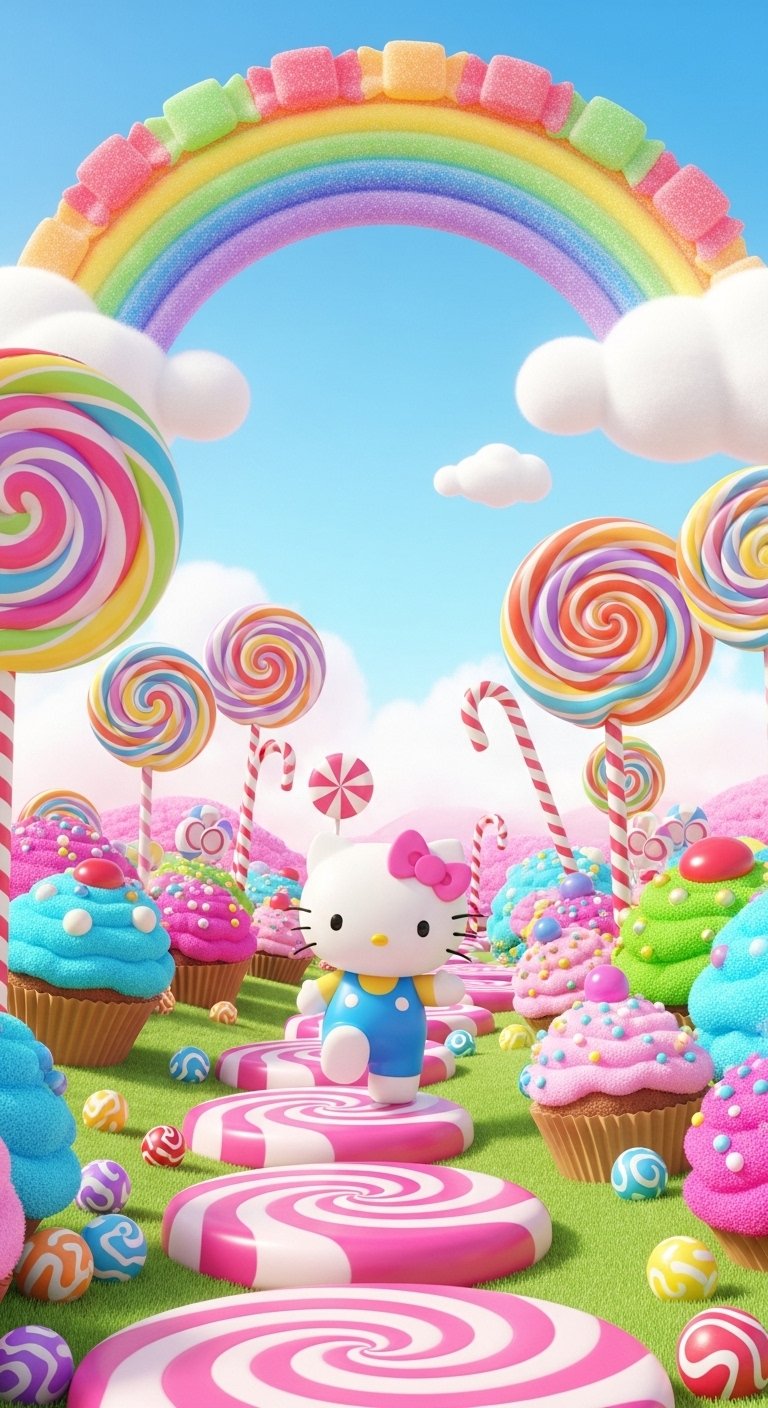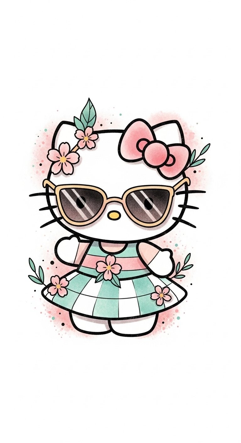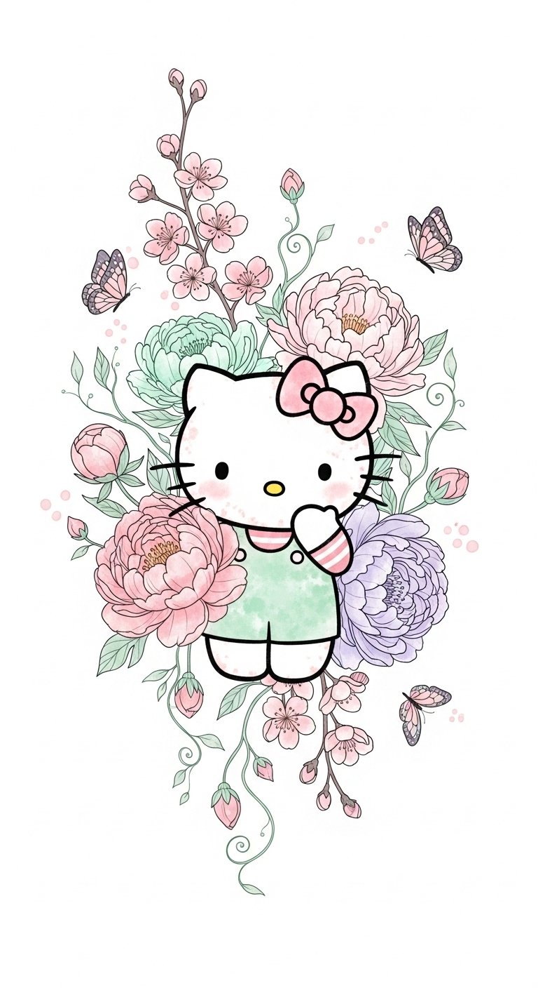 Imagine Hello Kitty surrounded by blooming flowers and whimsical designs that reflect your favorite color palettes.
