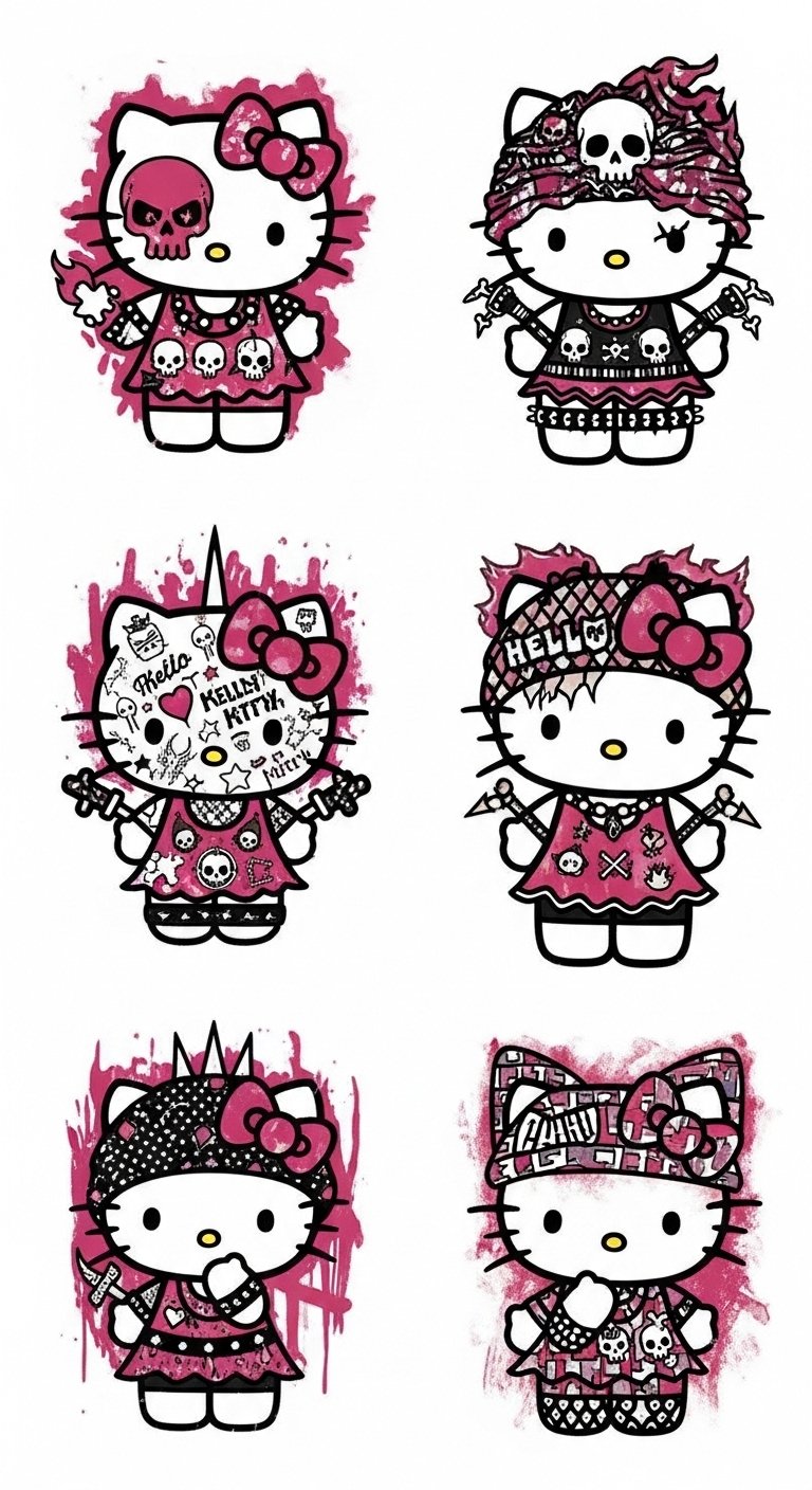 This design concept turns the described small Hello Kitty head into a compact, personal emblem: a minimalist outline of the head with soft color fills, interchangeable bows or tiny accessories (flower, star, tiny crown) to reflect mood or meaning, and optional micro-pattern details (dots, hearts) for texture. Symbolically it blends nostalgia and playful self-expression—comforting childhood memory combined with current identity. It evokes warmth, joy, and a gentle rebellious charm when customized. Ideal placements: inner wrist, behind the ear, ankle, or finger for a discreet, intimate statement.