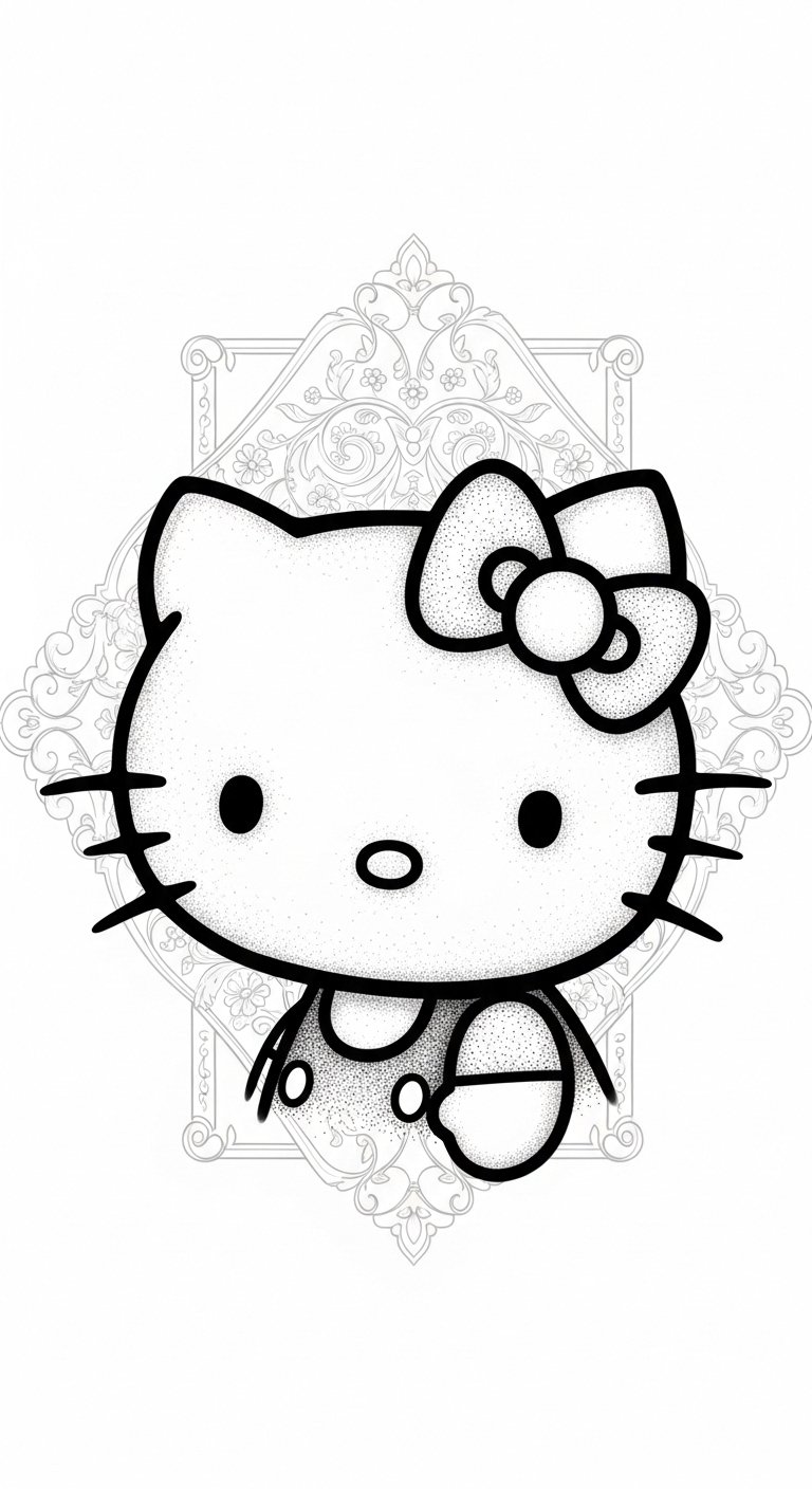 The Victorian lace Hello Kitty evokes nostalgia and elegance—the lace and filigree symbolize delicate strength and attention to detail, while the contrast of soft dotwork against bold shadows creates depth and quiet drama; emotionally it balances innocence with maturity.