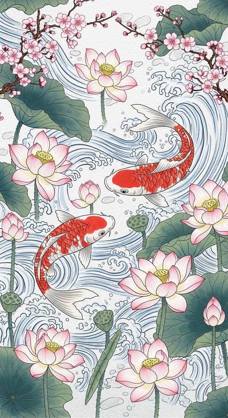 The koi symbolizes perseverance and transformation, while cherry blossoms represent the fleeting nature of life. Together, they embody a journey of resilience and beauty, reminding you to embrace freedom and cherish each moment.