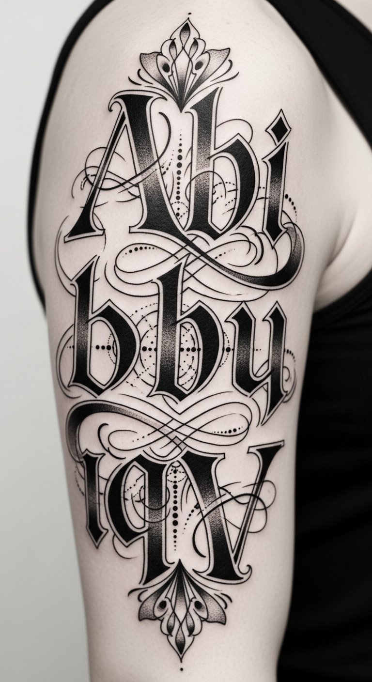 As you gaze, you unravel visual puzzles, where shapes transform into letters and vice versa. This playful dance invites you to embrace freedom of interpretation, making your tattoo a unique expression of individuality and creativity.