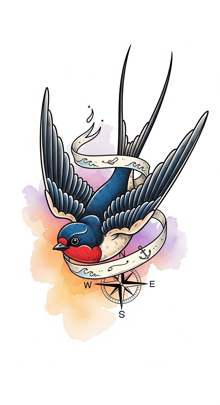 When you think of swallows, envision them darting through the sky, embodying the essence of loyalty and safe travels.