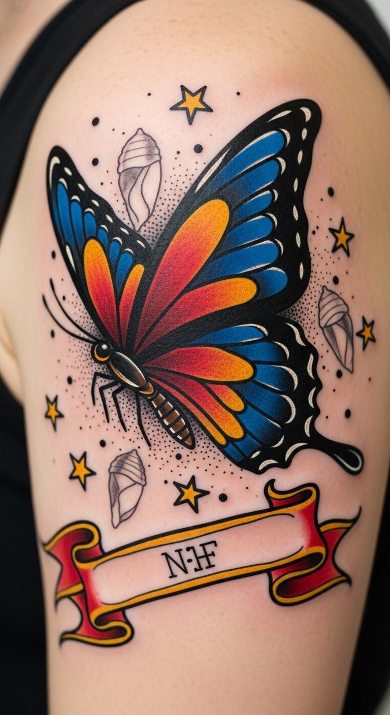 Butterflies flutter through the domain of Americana tattoos as vibrant symbols of transformation and rebirth. They embody the essence of butterfly metamorphosis, reminding you that change is beautiful and necessary.