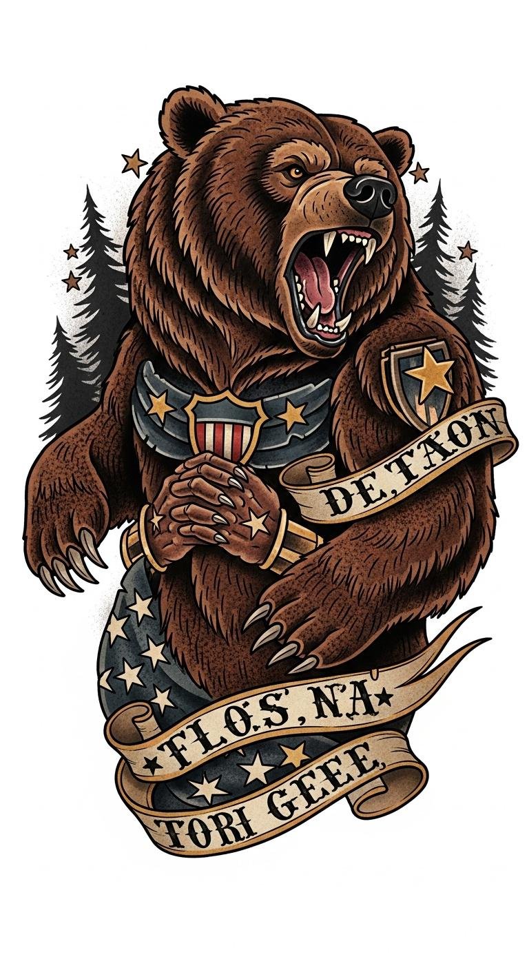 Bears, with their formidable presence and fierce loyalty, symbolize strength and protection in the world of Americana tattoos.