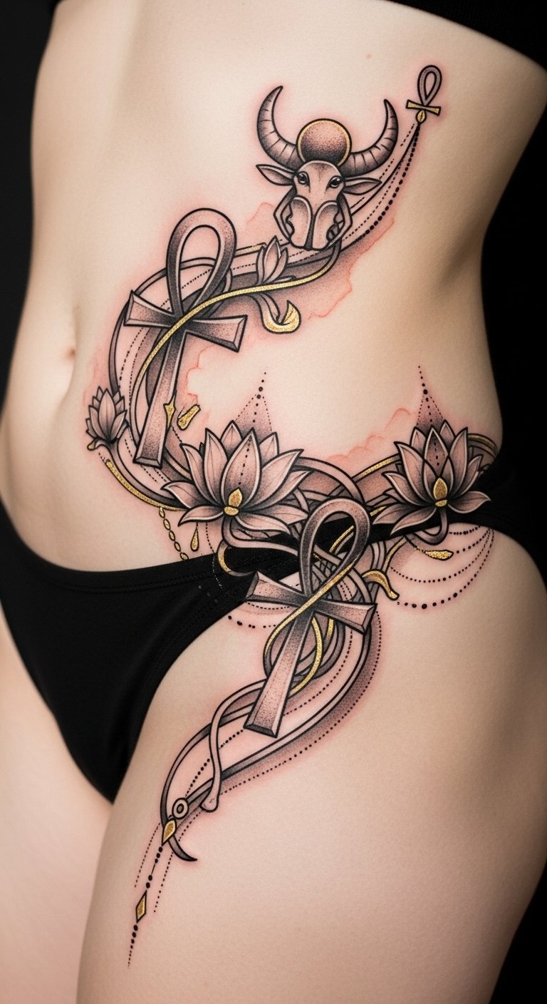 In the vibrant tapestry of ancient Egypt, ritualistic designs transcended mere decoration, embodying profound spiritual meanings and cultural beliefs. You’d find tattoos representing fertility and divine protection, etched into skin with ritual significance.