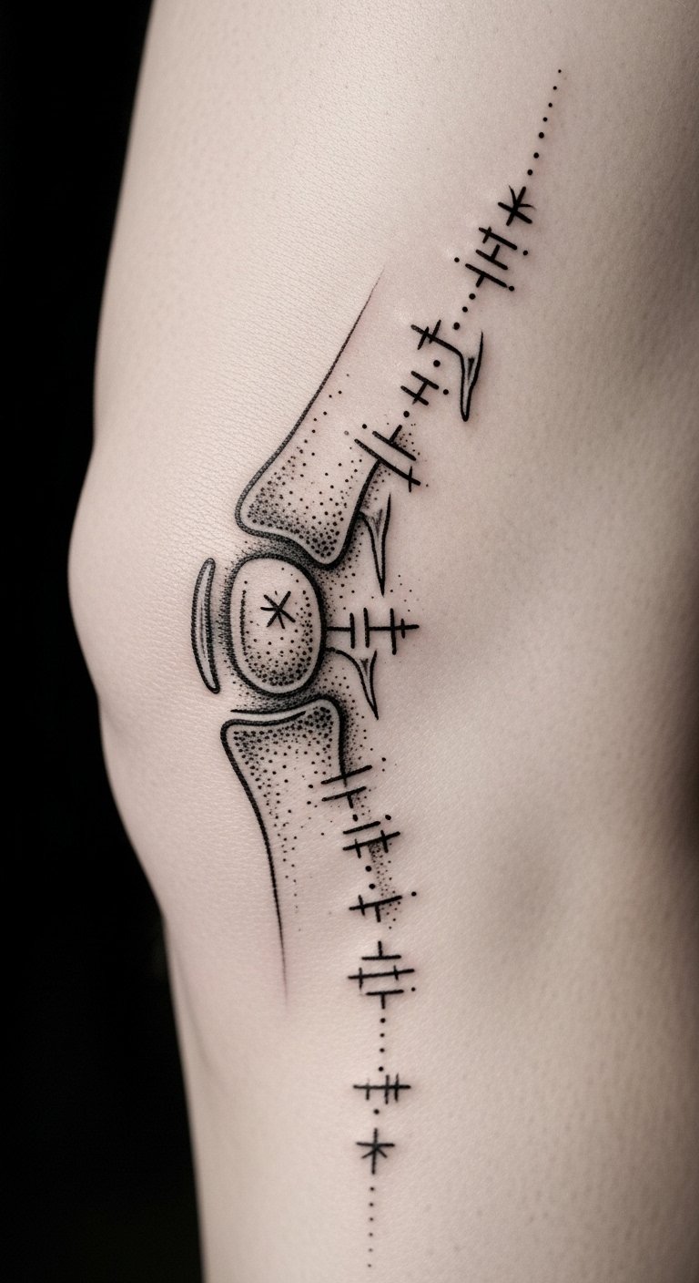 Placed over a joint or along the lumbar curve, the tattoo functions as a talisman of resilience—quiet, clinical, and intimate—invoking comfort and connection to a lineage of healing.