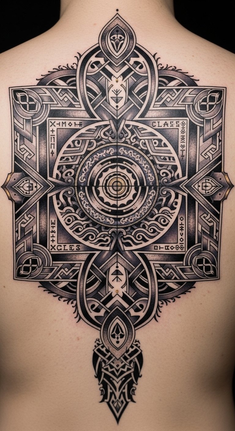 The design reflects the echoes of ancient tattoo traditions resonating vibrantly in contemporary culture, where timeless symbols have found new expression and significance.