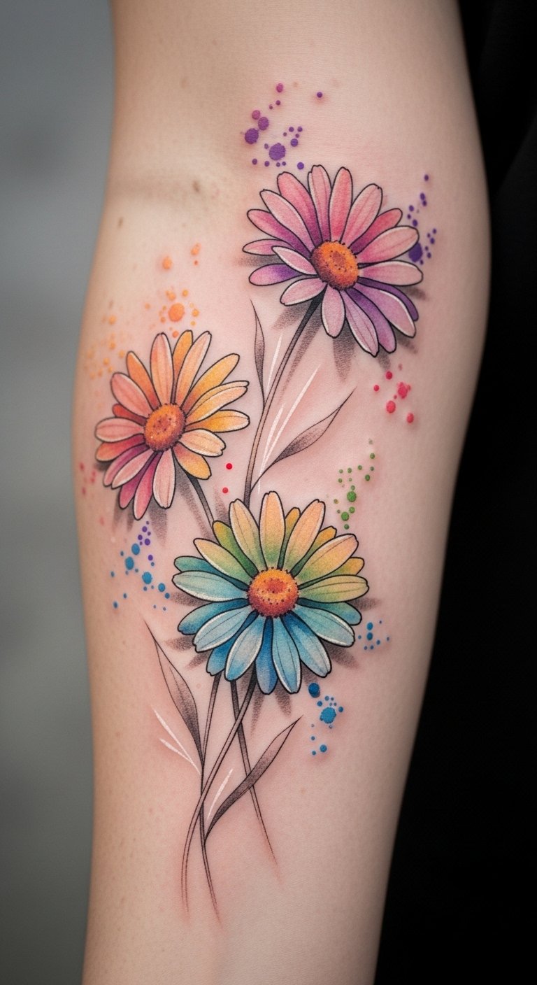 When you think of cheerful blooms that embody innocence and purity, watercolor daisy tattoos come to mind as a vibrant choice.
