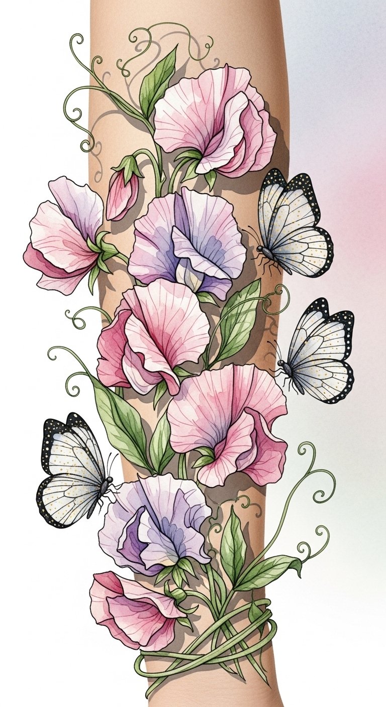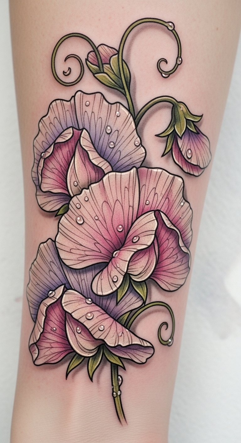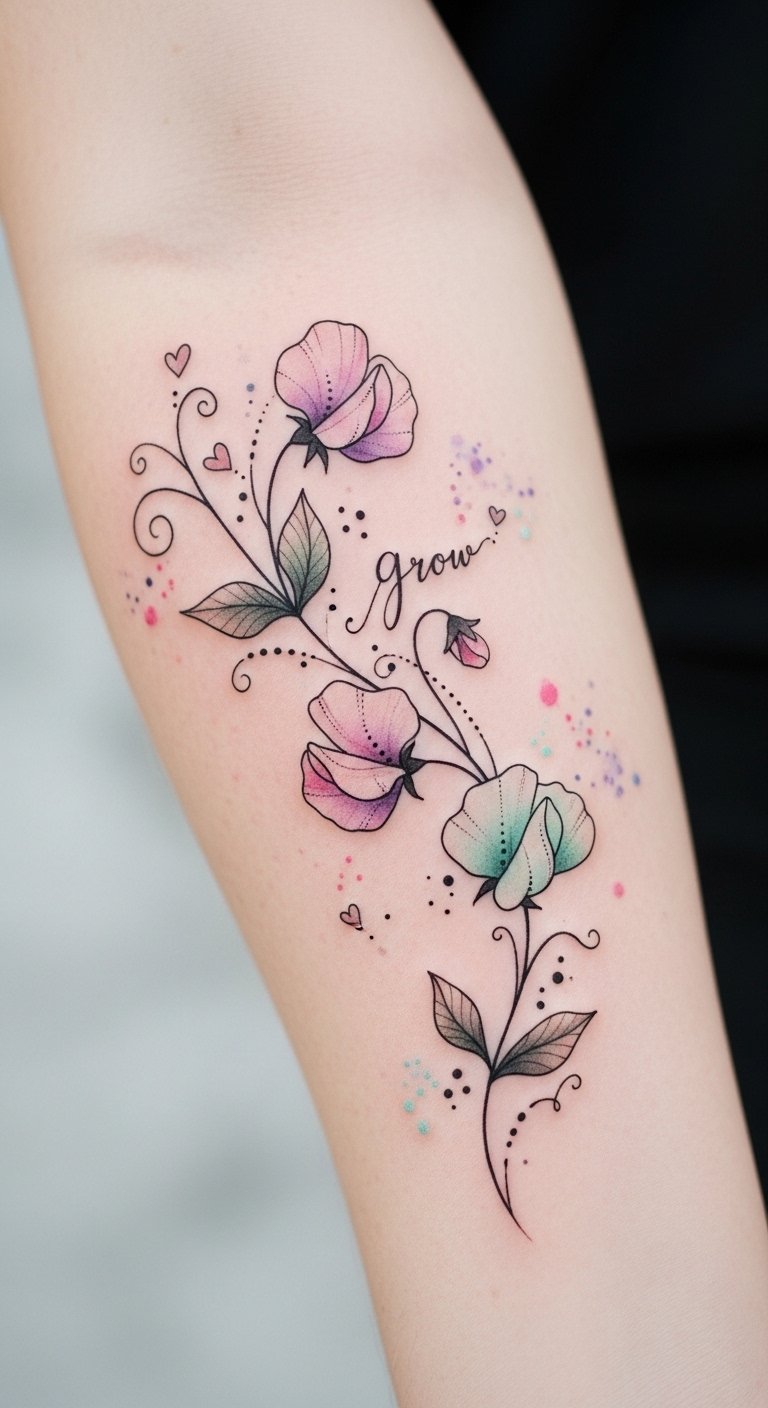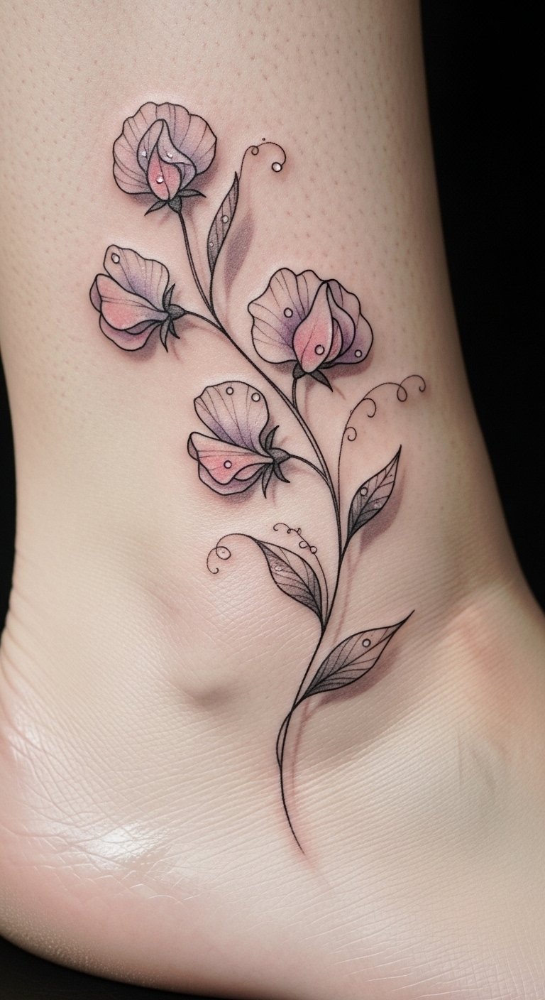 Whimsical Sweet Pea Tattoos for Emotional Depth