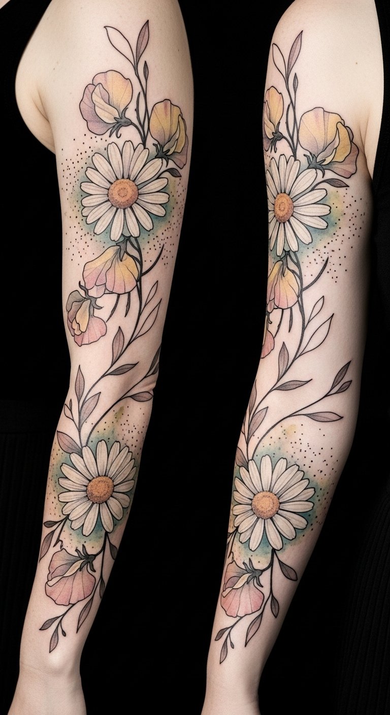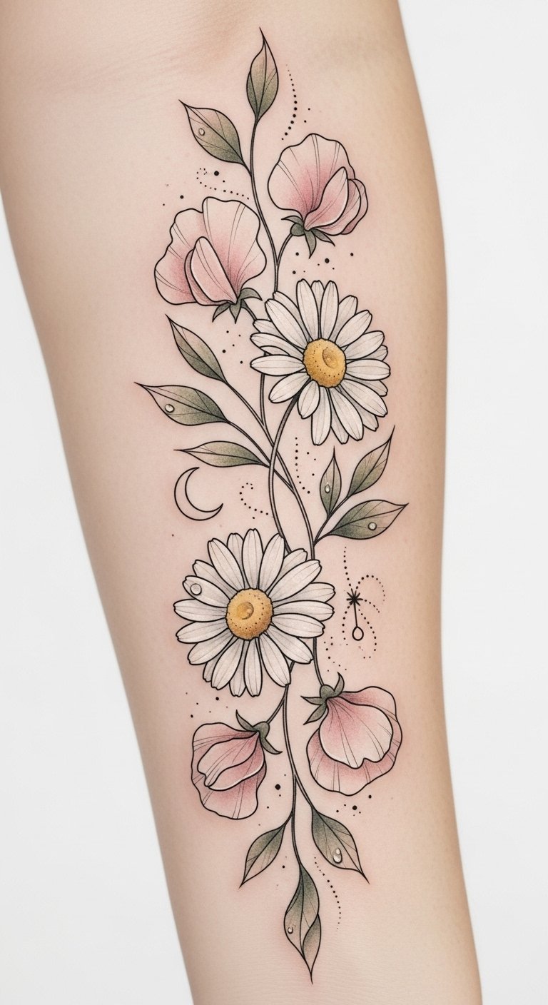 Combining Daisy and Sweet Pea in One Tattoo