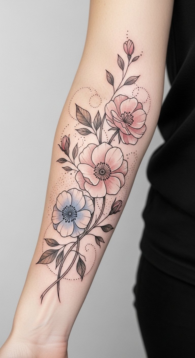 When considering a tattoo that celebrates your birth flowers, the forearm serves as an ideal canvas, offering both visibility and a personal touch.