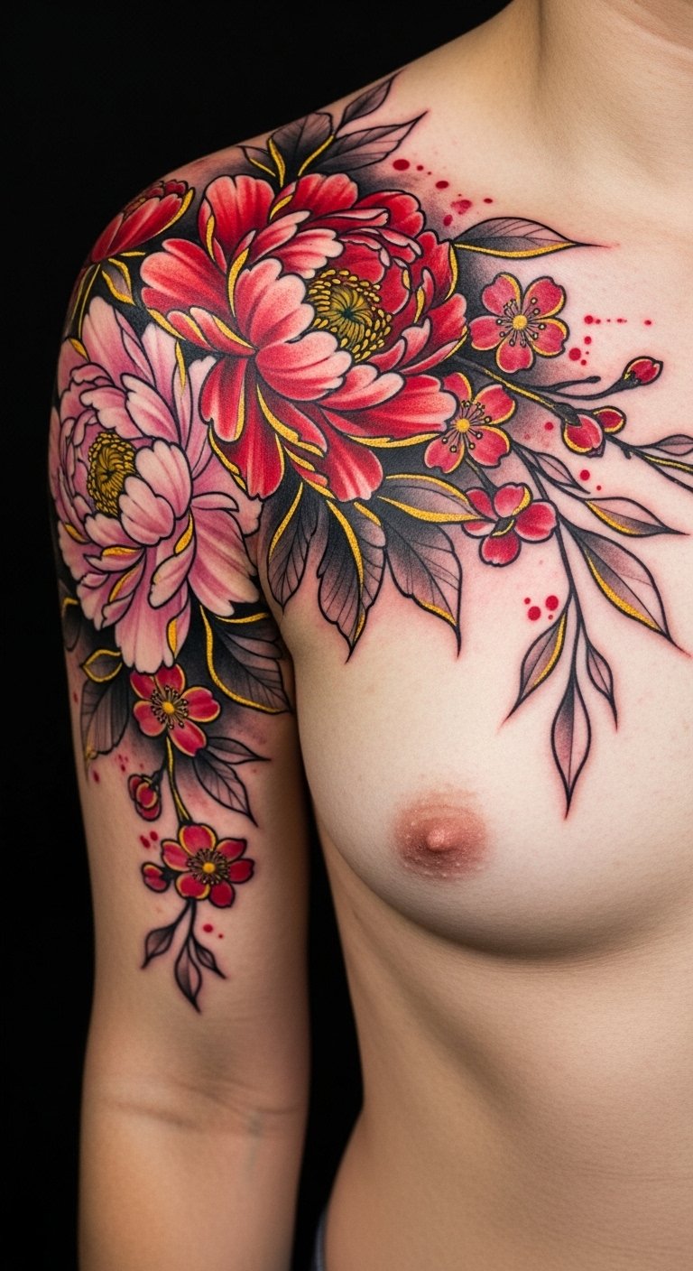 Shoulder Blossom Tattoos for a Bold Statement