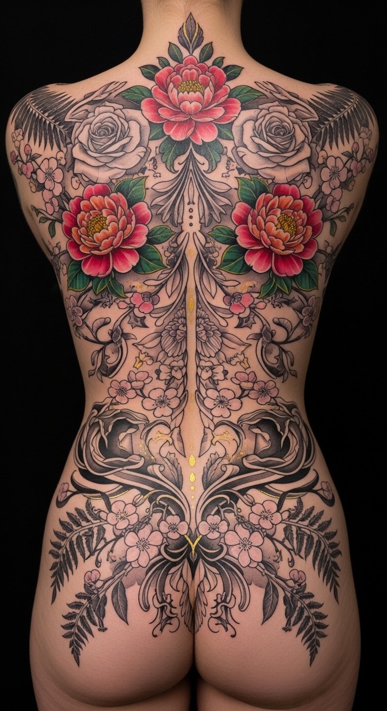 Back Tattoos: Expansive Floral Arrangements