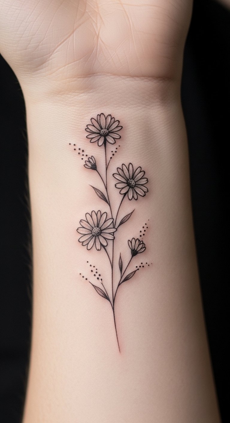 Delicate Wrist Tattoos Featuring Daisies