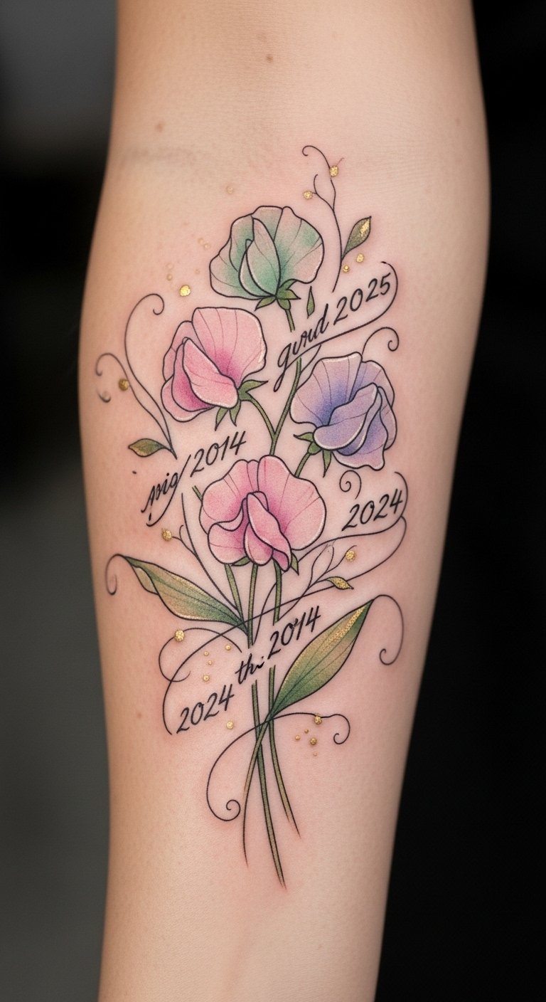 Adding Meaningful Dates to Sweet Pea Tattoos
