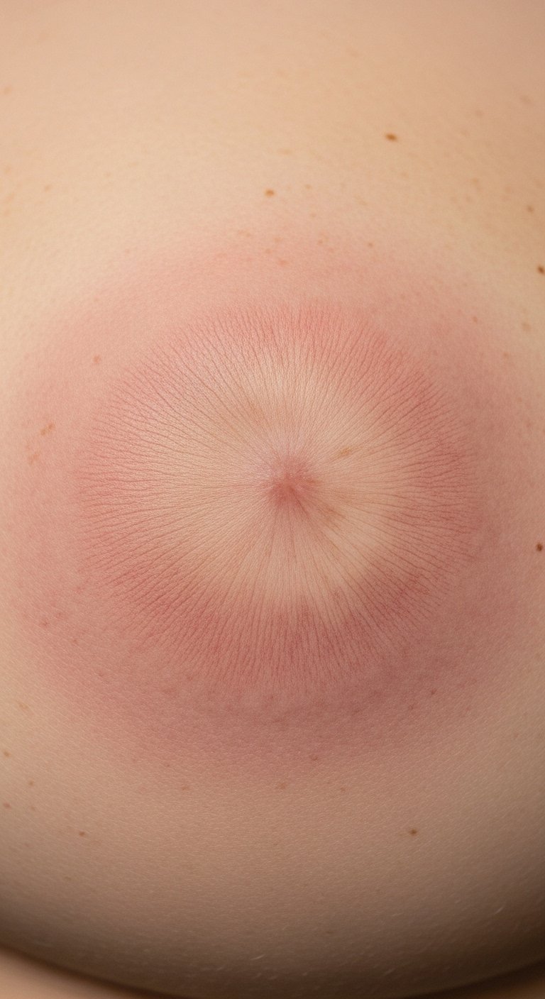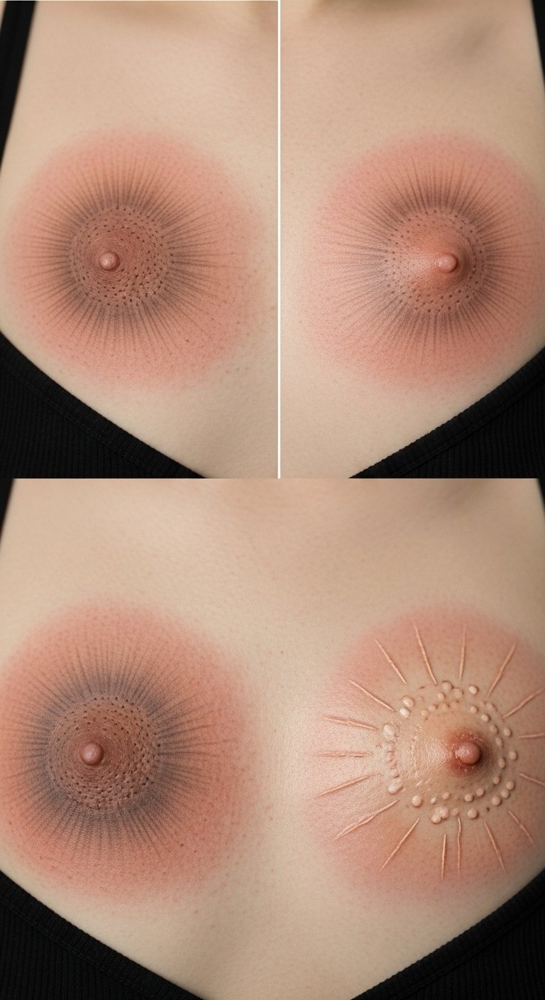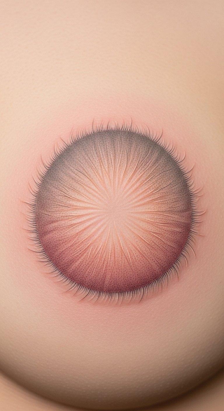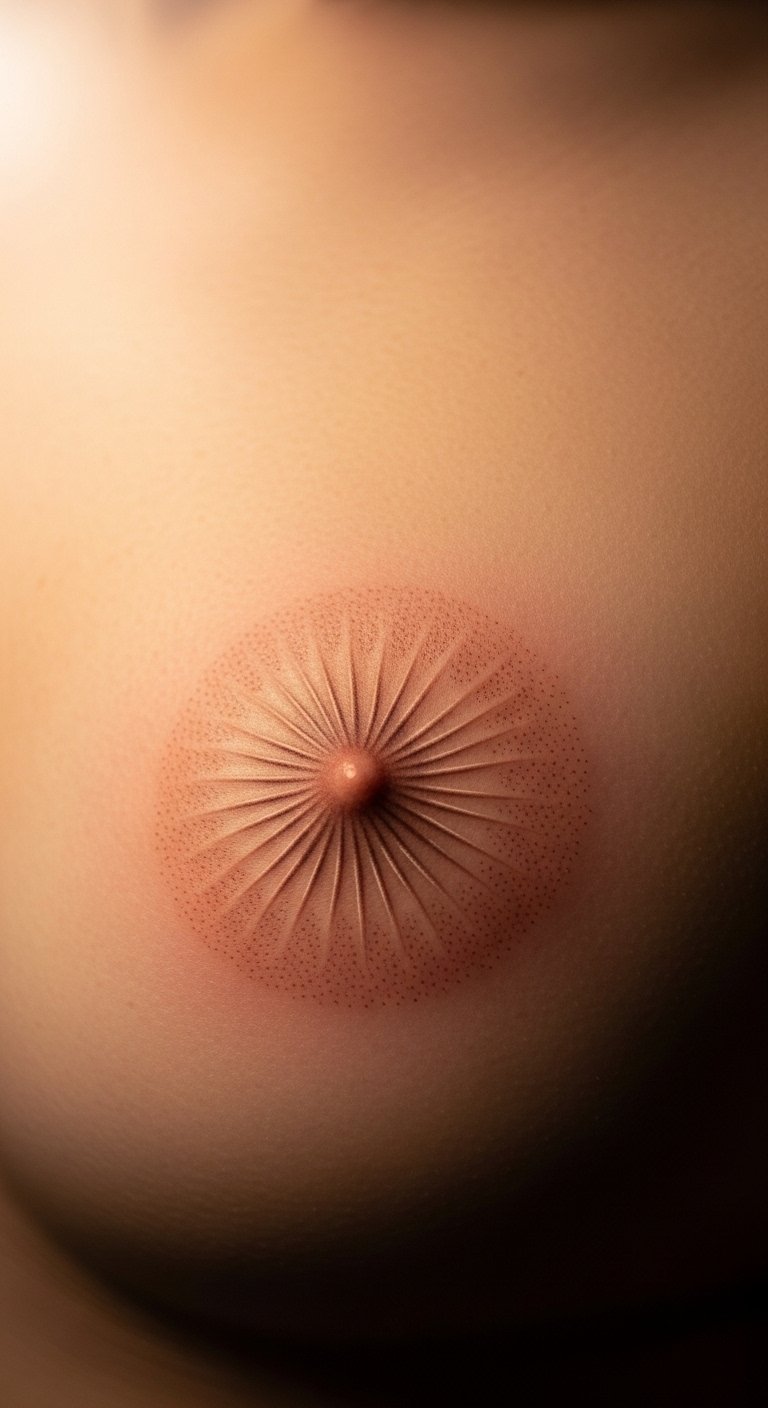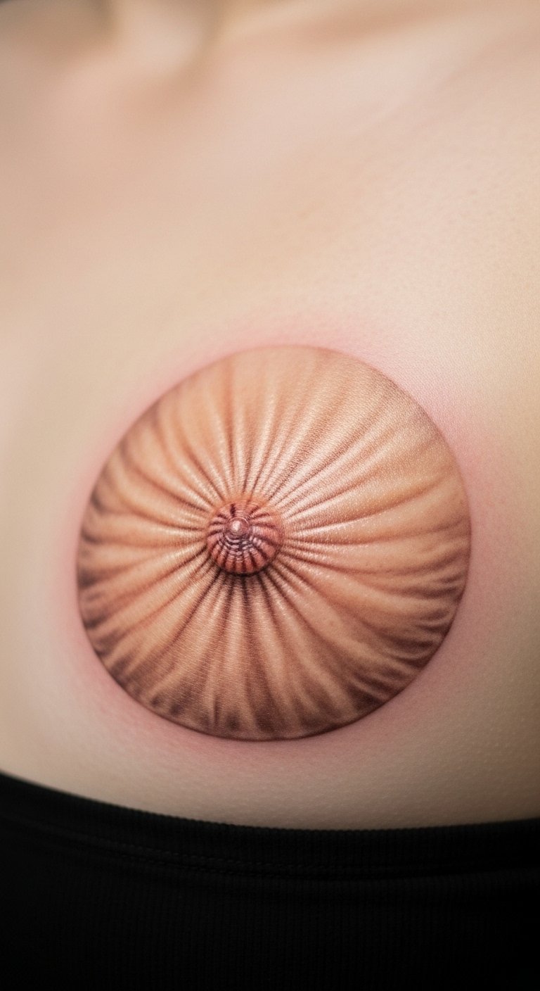 This design concept centers on a circular, subtly textured areola rendered with meticulous realistic shading and layered color blending to mimic natural skin tones and glandular texture.