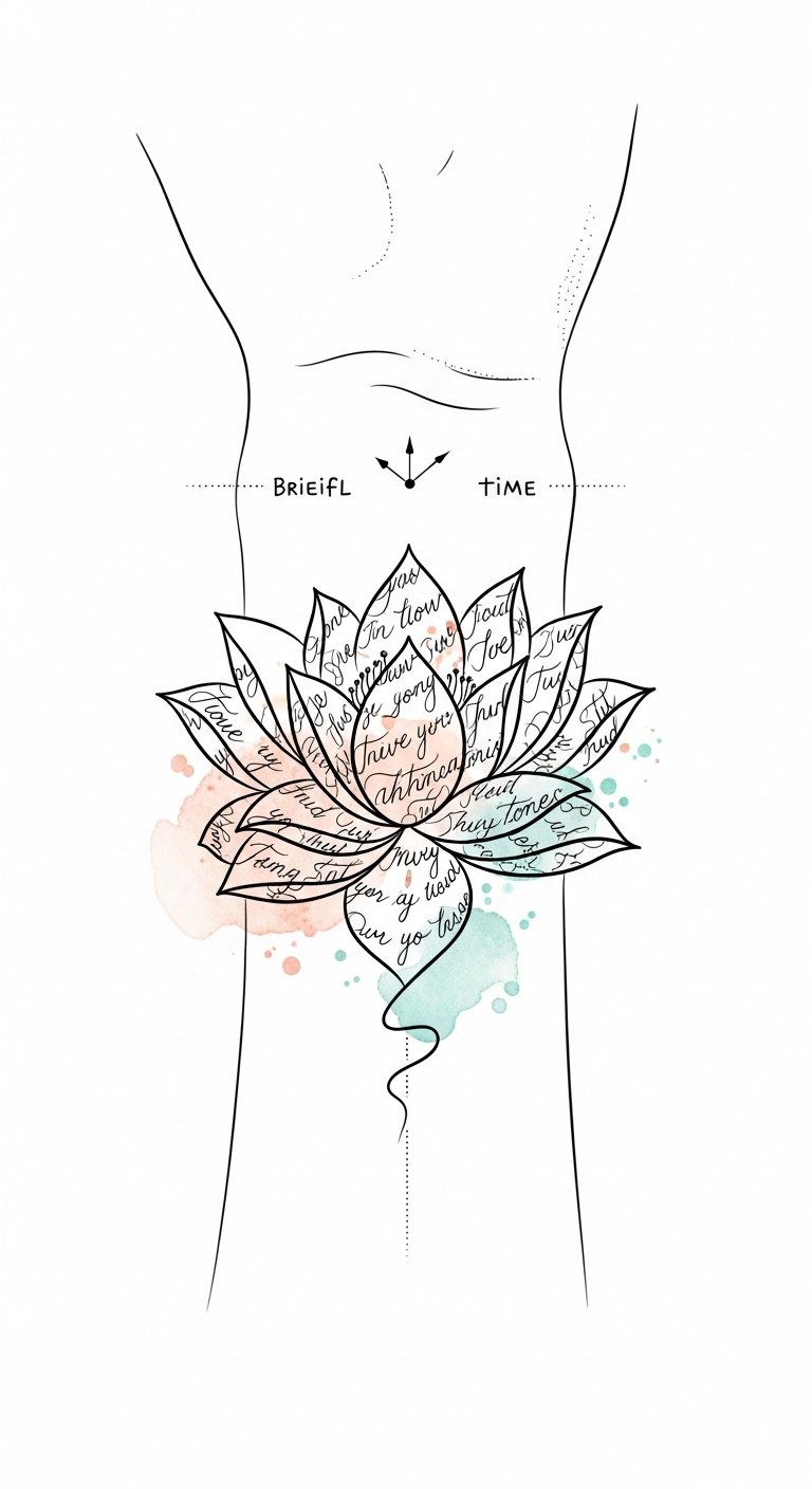 The lotus symbolizes natural beauty, growth, and renewal; integrating the unaltered text into its petals turns the message into a personal mantra, preserving the exact wording as part of the design’s identity.