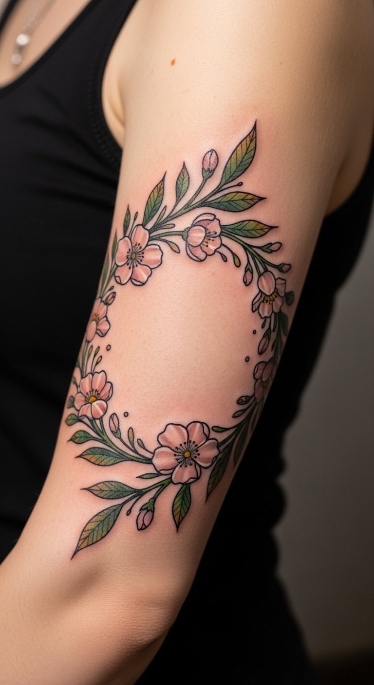 Place the band on the upper arm where its circular form encircles the bicep—visible enough to honor heritage yet private enough to feel intimate—so the tattoo reads as both a celebration and a vow.