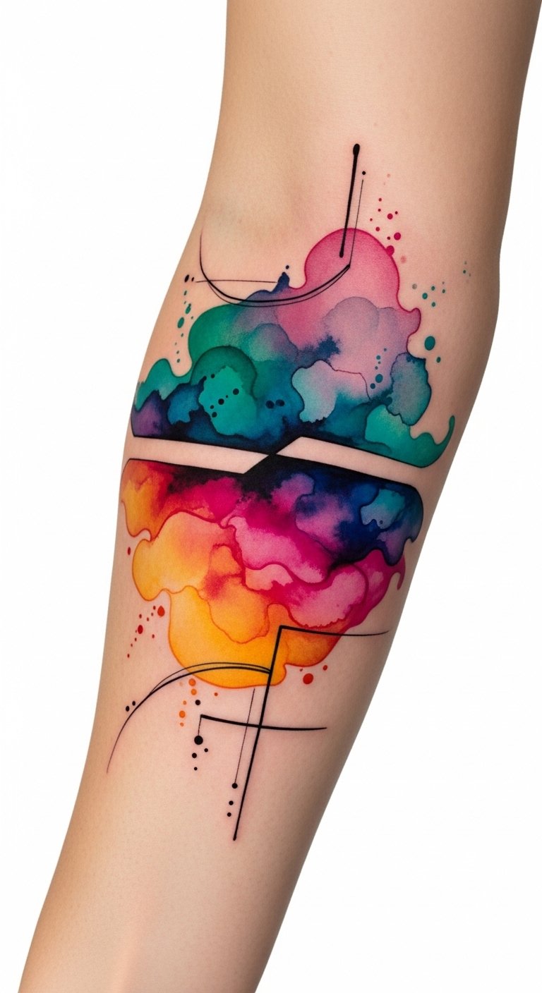 A design that merges geometric precision, watercolor vibrancy, and tribal intricacy symbolizes the wearer’s journey of self-discovery—ordered structure (geometry) balanced by emotional fluidity (watercolor) and cultural roots (tribal motifs).