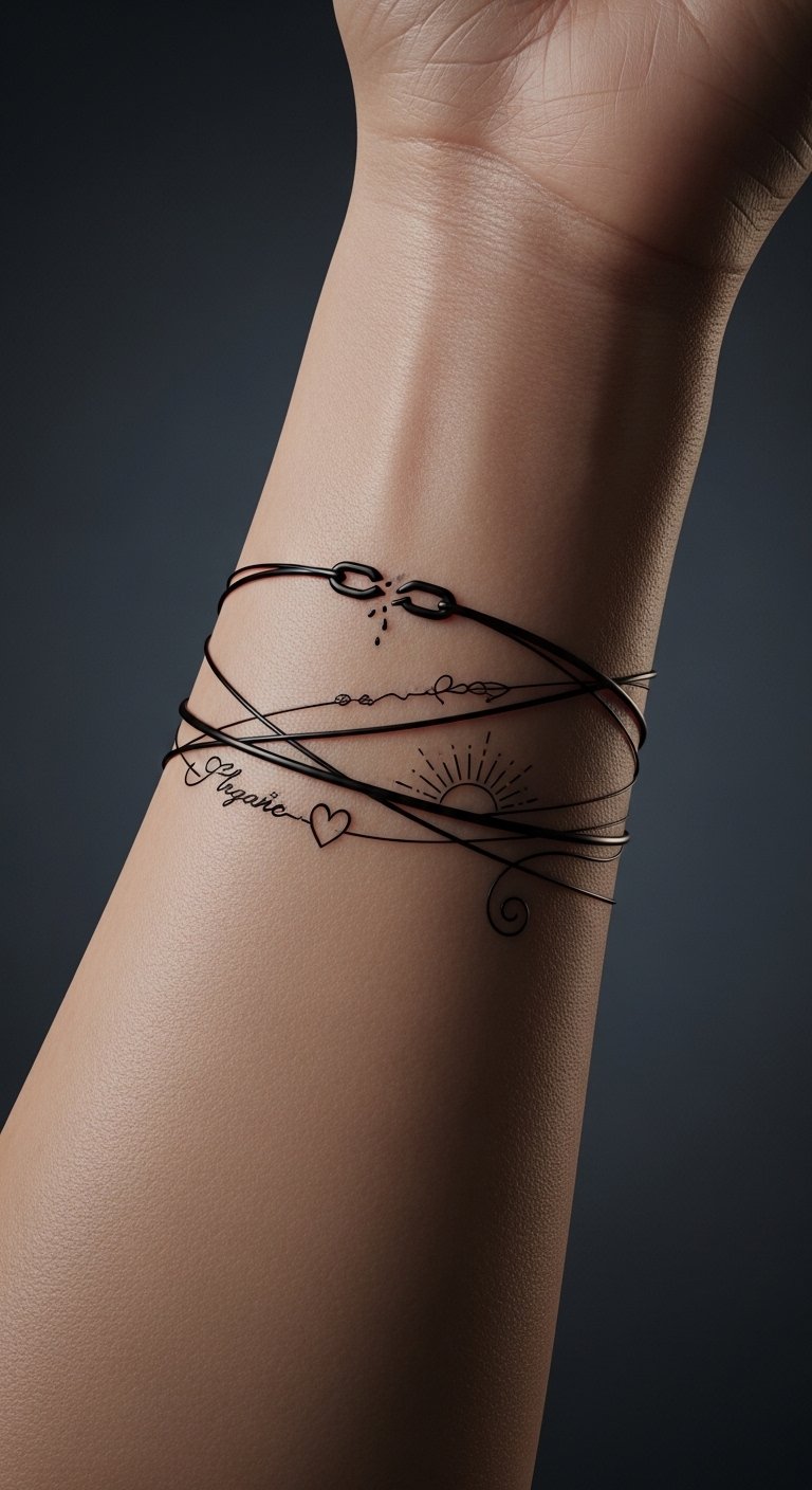 Ideal placement is along the inner forearm or wrapping the wrist so the vertical axis aligns with the arm, allowing the piece to expand outward or be scaled down for a discreet, meaningful accent.