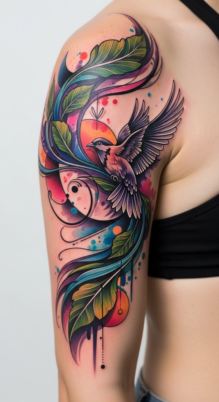 Imagine swirling vibrant hues blending seamlessly, creating a stunning visual narrative on your skin. This artistic expression allows you to showcase your individuality, celebrating freedom in every brushstroke.