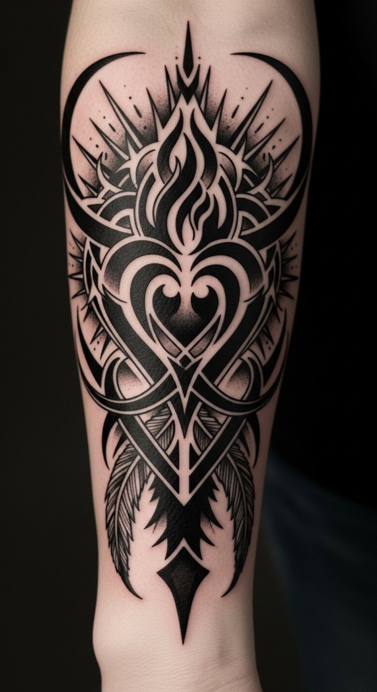 Sized and aligned for the forearm or rib, the vertical composition follows the body’s natural lines to feel intimate and meditative, inviting personal reflection and subtle visibility.