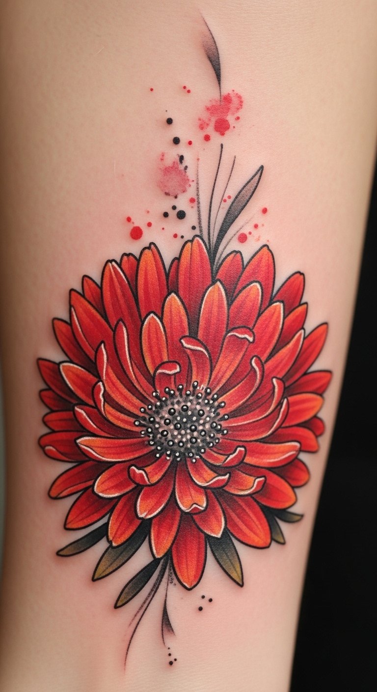 Fiery Red Aster Tattoos: Symbols of Passionate Love
